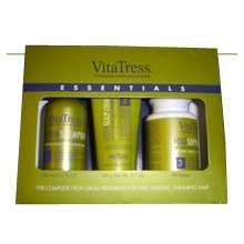 Vitatress Biotin Shampoo 3.3ozA nutrient rich formulation for fine, fragile, thinning hair. This breakthrough formulation utilizes amazing Jojoba, the remarkable botanical oil, to meticulously cleanse the scalp of excess sebum, while infusing Biotin, Cysteine, Inositol, Choline and Methionine into scalp and pores. These Amino Acids in addition to DHT inhibitors and circulation boosters provide the beneficial elements that are ideal for optimal hair growth.Biotin Scalp Creme 2.1ozVitaTress Biotin Creme is formulated with an abundance of nutrient rich ingredients including Biotin, B-Complex Vitamins, Amino Acids and Proteins to penetrate the epidermis and provide an ideal environment on the scalp for the growth of healthy hair. Vitatress Food Supplement 90 Tablets Contains vitamins and amino acids normally found in healthy hair ? Sustained release provides a continuous source of vitamins ? A specific supplement which does not replace multi-vitamins ? An integral part of the VitaTress hair revitalization programHair Food Supplement provides optimal nutritional support for individuals experiencing fine, fragile, thinning hair. This nutritious dietary supplement contains the most important Nutrients research has determined to be necessary for the body to exhibit healthy hair: B-Complex Vitamins, Biotin, Choline, Inositol, Methionine and other highly nourishing ingredients.Nutritional science has proven that fragile, thinning hair can be effectively treated internally as well as topically. Nexxus developed VitaTress Hair Food Supplement to contain the necessary Vitamins and Amino Acids normally found in healthy hair. Directions: Take 1-3 tablets daily, preferably with a meal.