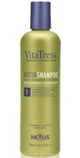 for fine, fragile, and thinning hair Conditioning cleanser especially forumulated for the problems related to fine, fragile, and thinning hair. Benefits: Combines scientifically advanced ingredients for treating hair loss with renowned revitalizing Botanicals, Amino Acids, and Nutrients. Gives hair renewed "life," increased thickness and incredible body. Jojoba, the amazing botanical oil, helps to meticulously cleanse the scalp of excess sebum. Biotin, Cysteine, Inositol, Choline and Methionine penetrate the scalp and pores to add strength. Amino Acids, DHT inhibitors and circulation boosters provide the beneficial elements that are ideal for optimal hair growth. Biotin Shampoo is a vital component of the VitaTress Hair Revitalization program for fragile, thinning hair. The program features a comprehensive collection of proactive formulations including nutritional VitaTress Hair Food Dietary Supplement to promote full, voluminous, and healthy hair.